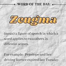Zeugma (ZOOG-muh, from Greek zeugma = yoking,