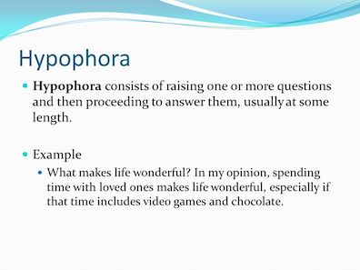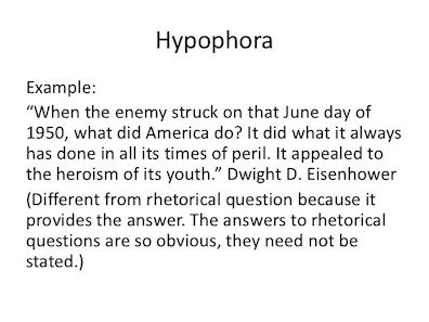 audience participation is needed. Hypophora too eliminates all