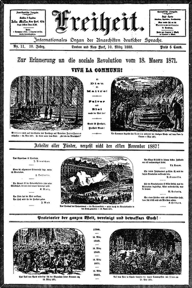 themselves. At Most's feet his newspaper Freiheit proclaims,