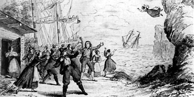 In Wagner's libretto, a sea captain named Daland takes refuge