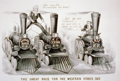 paddlewheel steamships, invariably featuring sail-bearing masts