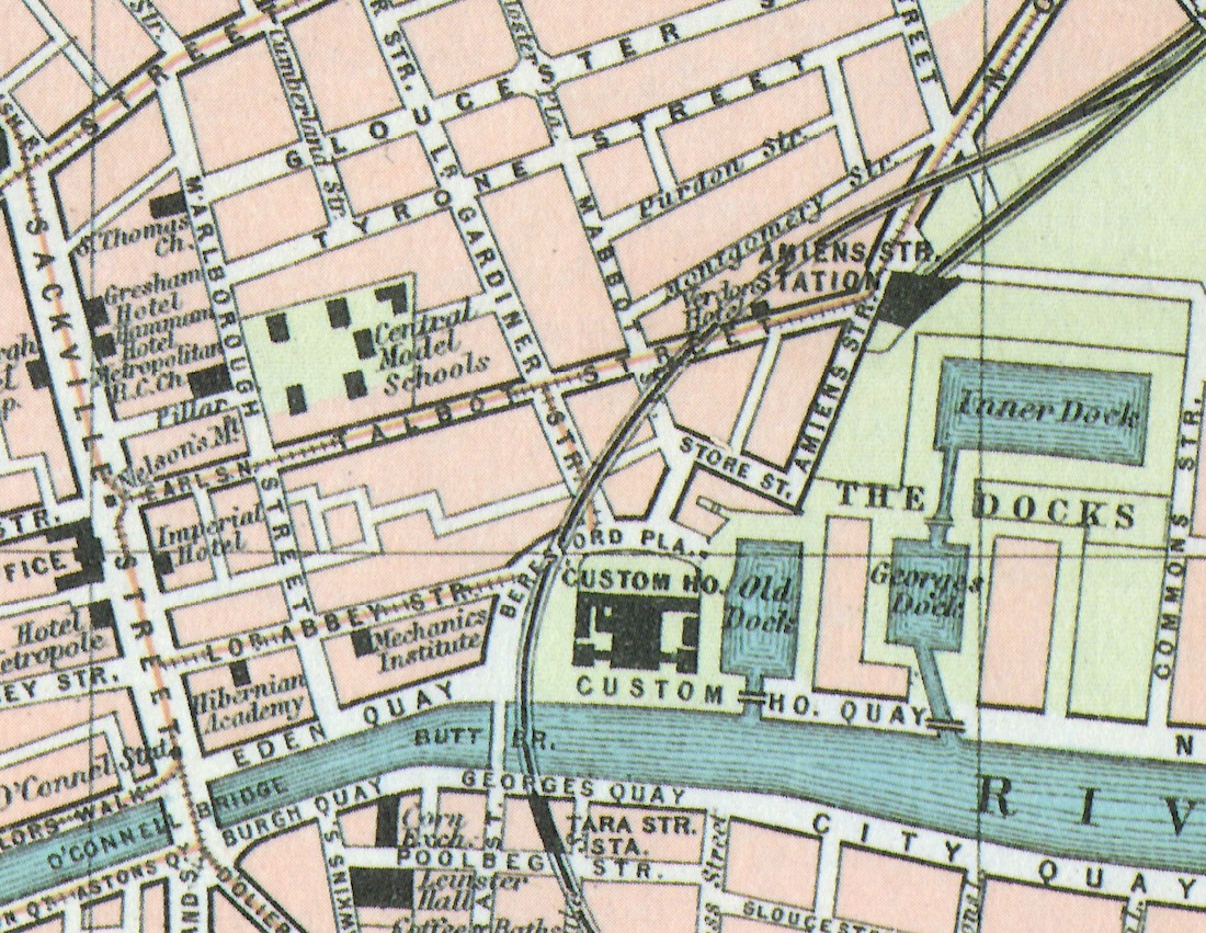 and Beresford Place. (Today, with the docks filled in, traffic