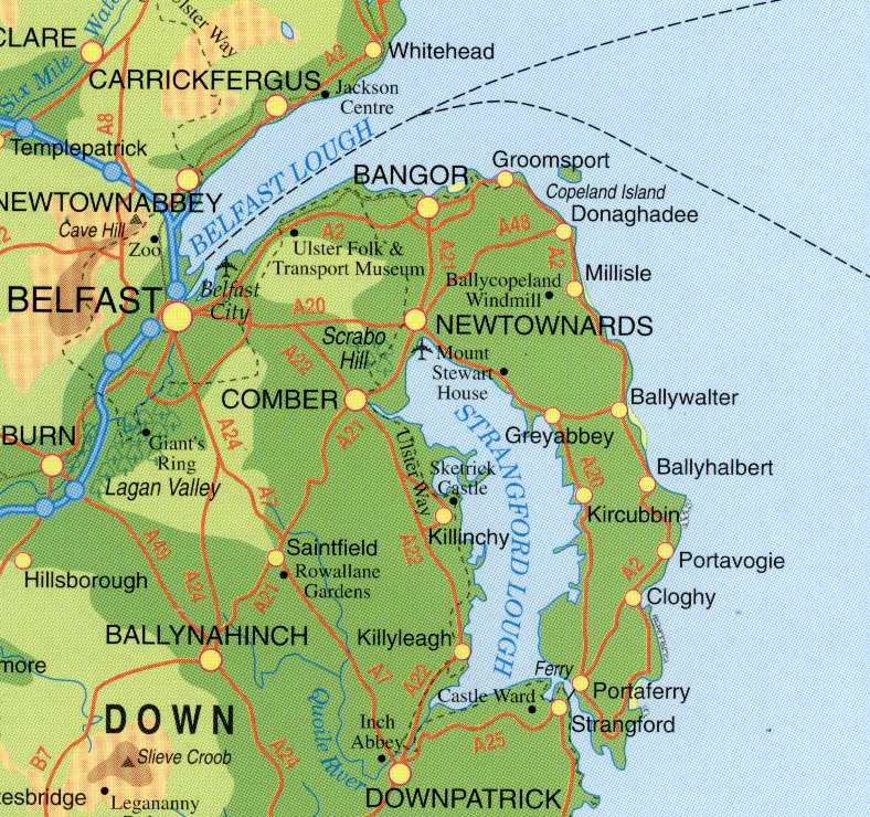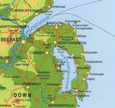wrapping around the Strangford Lough. It lies nearly 100 miles