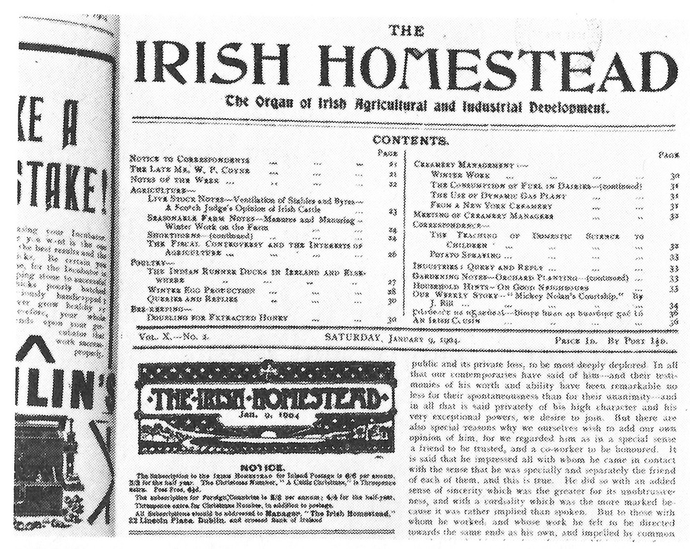 of his work with rural cooperatives for Sir Horace Plunkett's