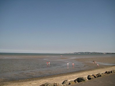 The Sandymount strand opens onto a vast tidal flat that