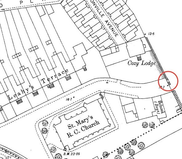 eastward on land reclaimed from the sea and Leahy's Terrace,