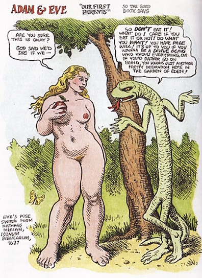 In book 9 of Paradise Lost, John Milton elaborately dramatized this simple encounter. Satan enters the body of the serpent, winds his sinuous way to the place where Eve is gardening, and addresses her flatteringly as "A goddess among gods, adored and served / By angels numberless, thy daily train" (547-48). Astonished to hear a mere animal speaking, she asks the snake how he has come by his eloquence, and he says that once, like other beasts, he had "abject thoughts and low" (572), but the fruit of a certain tree brought about "Strange alteration in me," endowing him with reason, speech, and "speculations high" (599-602). He leads her to the tree, and overcomes her reluctance by arguing that God gave his command "to keep ye low and ignorant, / His worshippers; he knows that in the day / Ye eat thereof . . . ye shall be as gods, / Knowing both good and evil as they know. / That ye should be as gods, since I as man, / Internal man, is but proportion meet, / I of brute human, ye of human gods" (704-12).