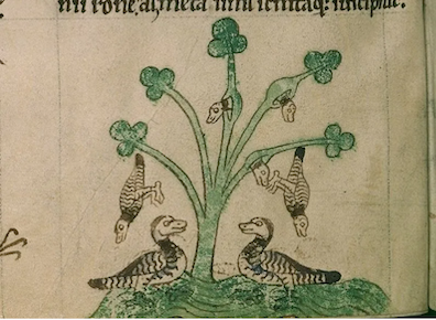 Hiberniae (1187), barnacle geese "are produced from