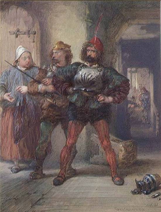 scene shows three of Falstaff's lowlife companions, Bardolph,