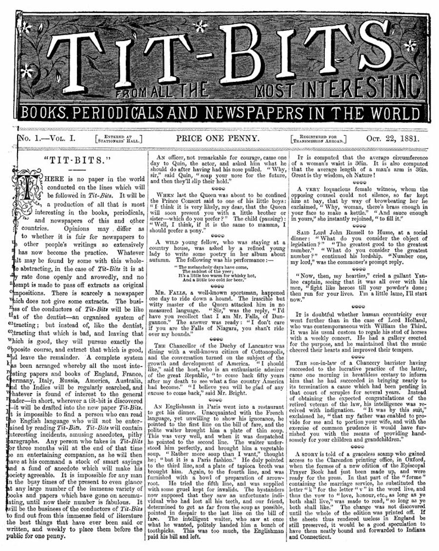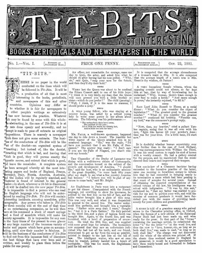 tit-bit or tid-bit was a tasty morsel of food, the sense that