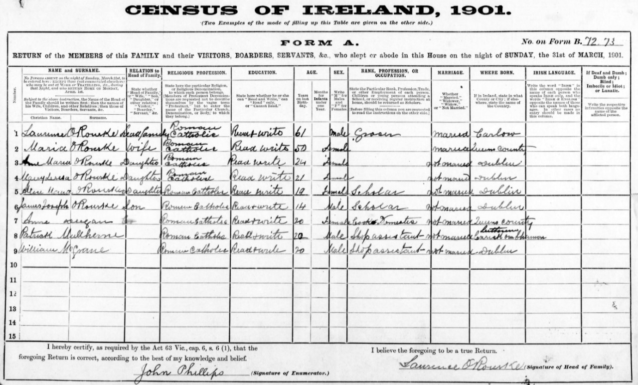 [2021: Checking the 1901 census records for Larry O'Rourke's