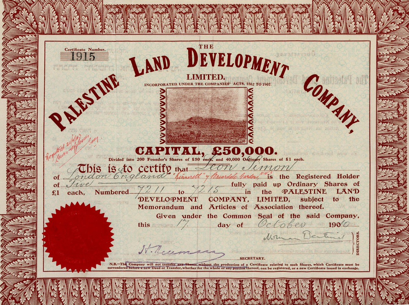 here from the letterhead of the Palestine Land Development