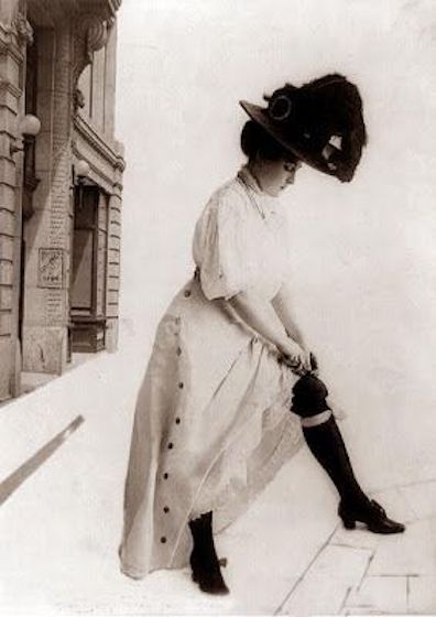 snapping her garter against her "woman's warmhosed thigh"—pretty