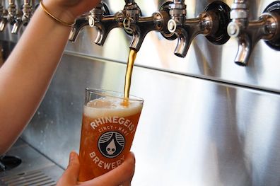 employees cleaning the taproom equipment, but some have