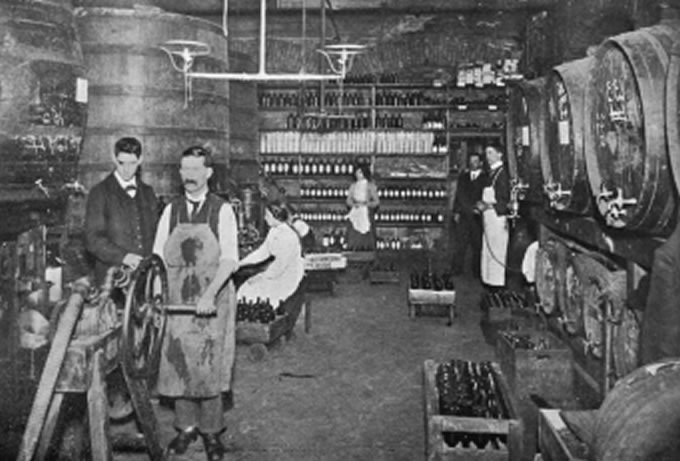 The beer bottling room at Findlater's Sackville Street store, date unknown. Source: www.findlaters.com.
