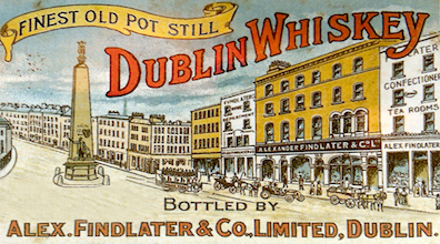 In Penelope Molly thinks of buying flowers the next morning from "Lambes there beside Findlaters." Miss Alicia Lambe ran a florist's shop at 33 Upper O'Connell Street, next to the massive Findlater's business at numbers 29-32, which sold Irish and English whiskeys and ales, French and German wines, Spanish ports, dry grains, boxed and bottled fruits, baked goods, spices, teas, cocoas, roasted coffee beans, oils, honeys and syrups, jams and jellies, pickles, anchovies, smoked bacon, eggs, butter, produce, and much more. Earlier, in Calypso, Bloom thinks of one of the prominent family owners of the company when he imagines poor pub servers from the country blossoming into "Adam Findlaters or Dan Tallons." Far from starting poor, Adam Findlater was born into a long-established and thriving company, and he capably contributed to its continuing expansion.