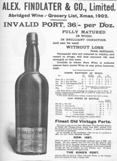 1902 ad listing prices for several of the Findlater's ports. Source: www.findlaters.com.