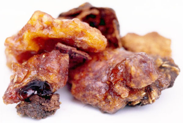 resin derived by tapping the gummy sap of shrubs and trees of