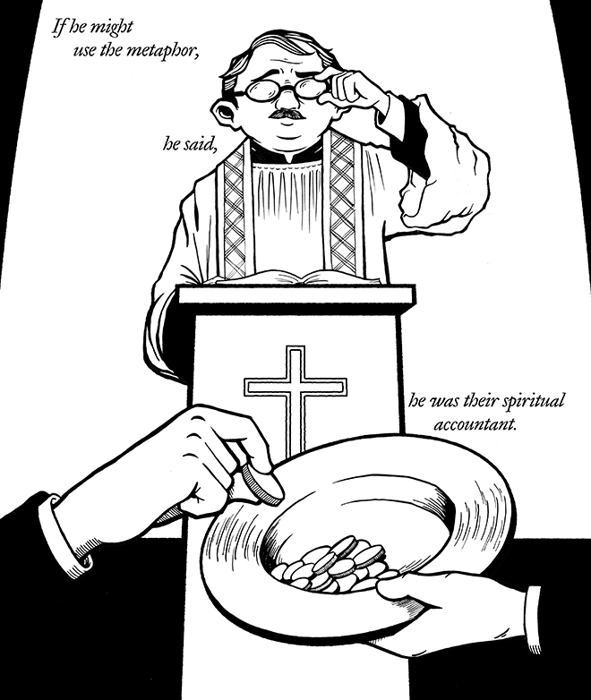 passage, the priest says, is "a text for business men and