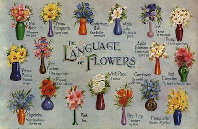After reading the letter to which Martha has pinned a flower, Bloom thinks, "Language of flowers. They like it because no-one can hear." Throughout the Victorian era people had used flowers as codes to communicate romantic feelings that could not be spoken aloud, and this one spurs Bloom to wonder which feelings Martha may have meant by it. Before reading the letter he muses, "A flower. I think it's a. A yellow flower with flattened petals." In Sirens he thinks, "Means something, language of flow. Was it a daisy? Innocence that is." He is correct about the daisy's significance, but not knowing whether he has received that or some other flower means that Martha's message must remain cryptic. Instead, the reader of Lotus Eaters gets Bloom's loose translation of her entire letter into flower language. His elaborations have darker overtones than the usual florigrams, more evocative of sexual desire and aggression.