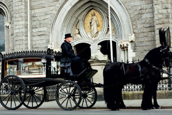 Black Victorian hearse for hire (white ones are also available) from Ramon Massey & Son Family Funeral Directors, Dublin. Source: www.ramonmasseys.ie.
