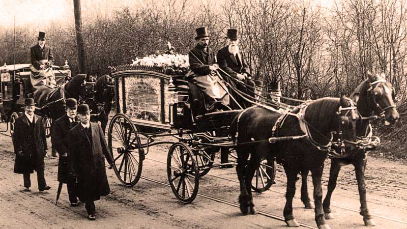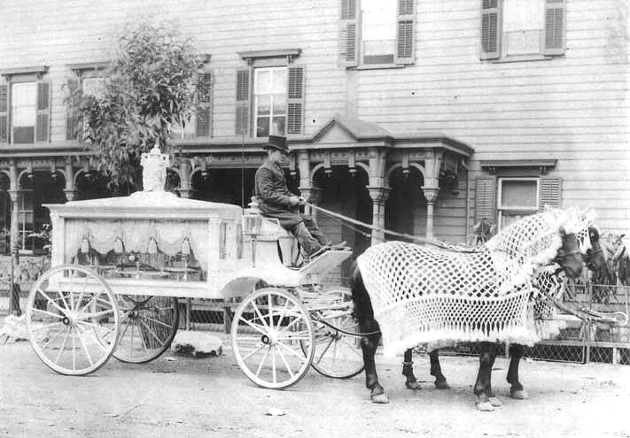 White hearse ca. 1900, photograph courtesy of the Neil Regan Funeral Home in Scranton, Pennsylvania. Source: Wikimedia Commons.