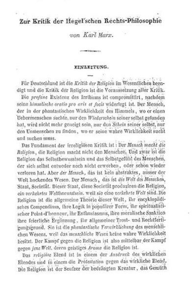 Critique of Hegel's Philosophy of Right. He used the