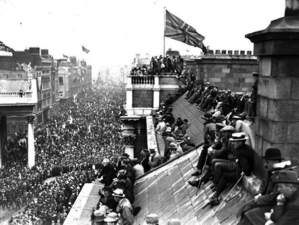 as it passes by: "Deep in Leinster street by Trinity's postern