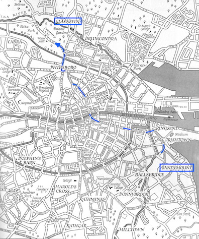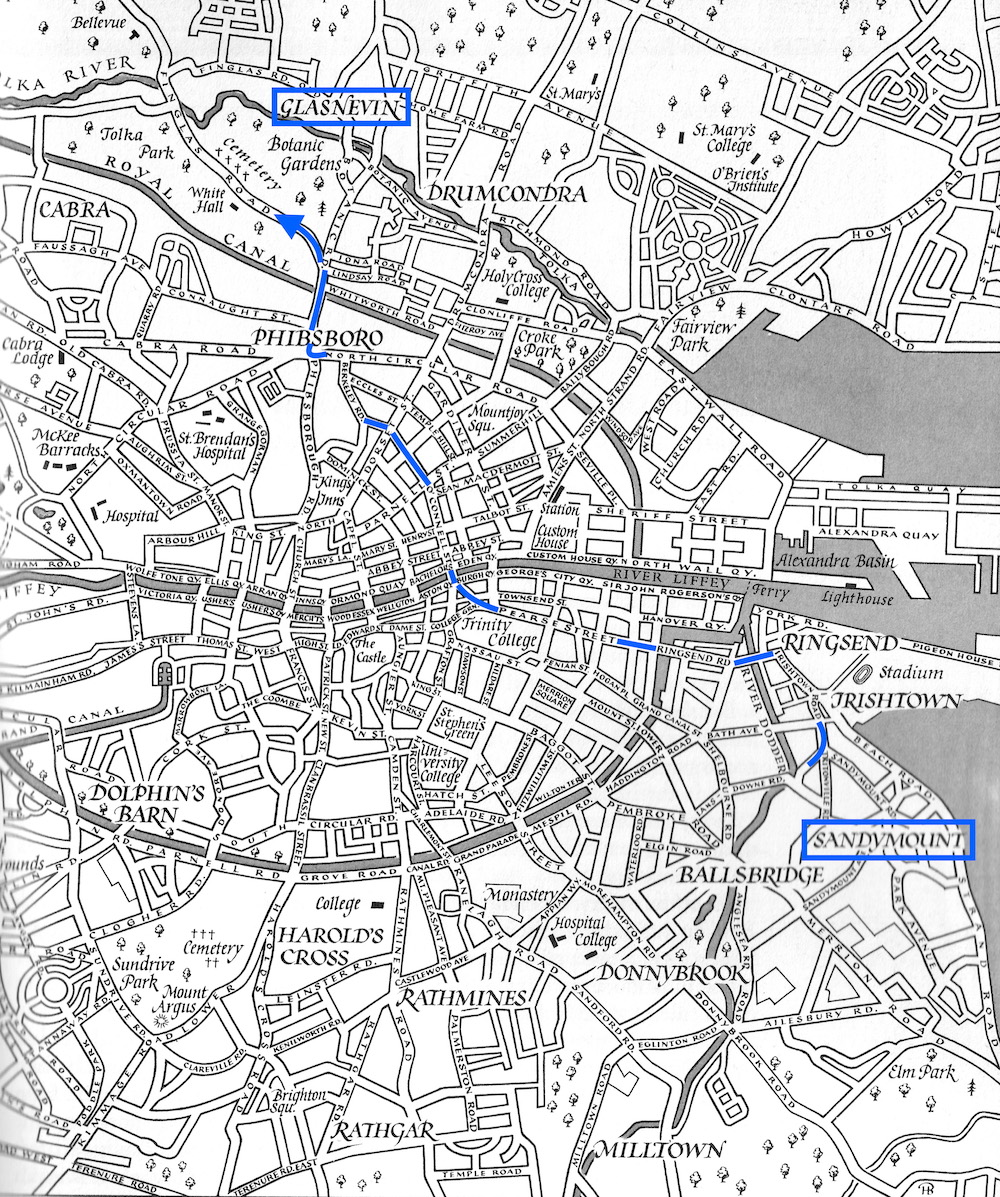 water ("Dodder bridge," "The Grand Canal," "the Liffey," "the