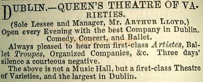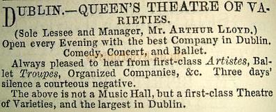 Queen's theatre" at 209 Great Brunswick (now Pearse) Street,