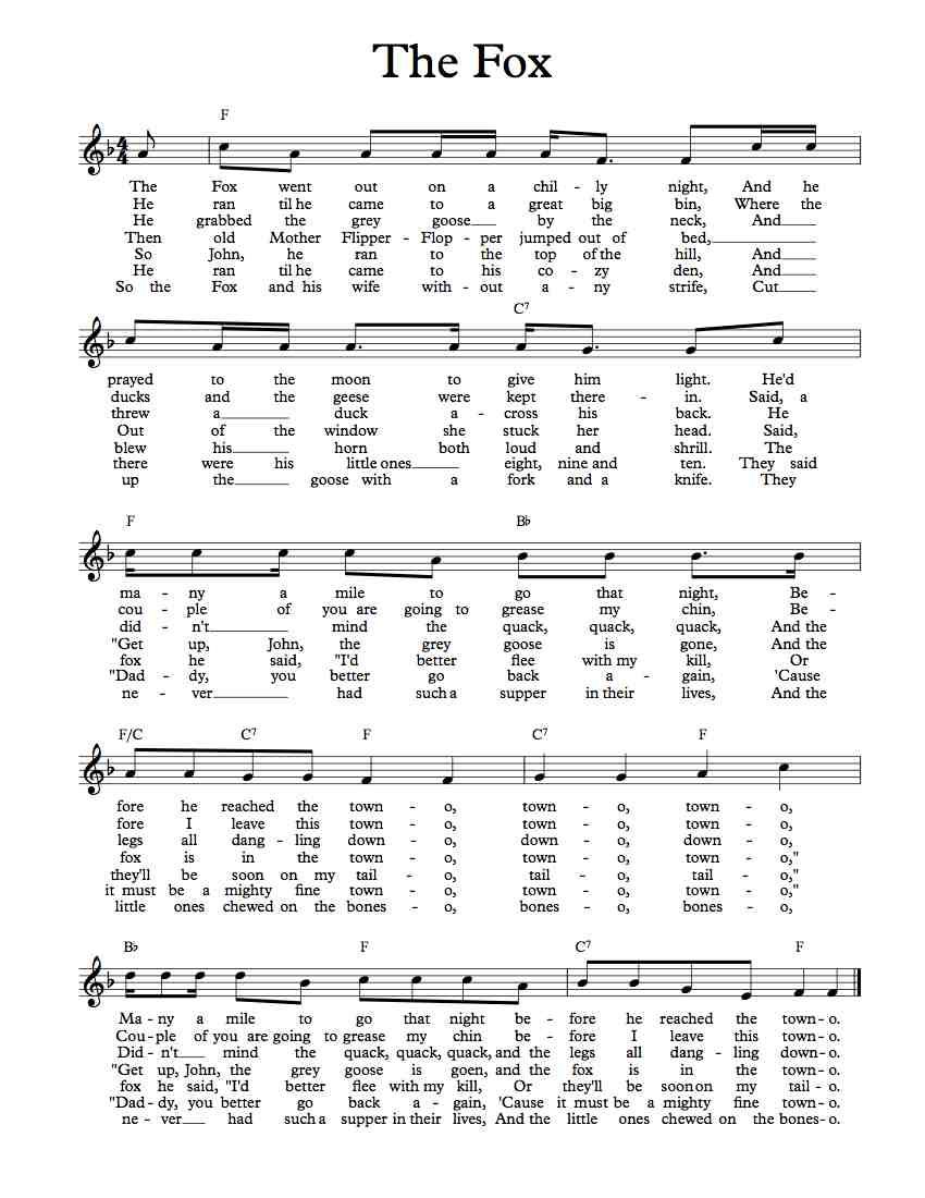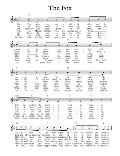 John, the grey goose is gone! / And the fox is on the town-o!"