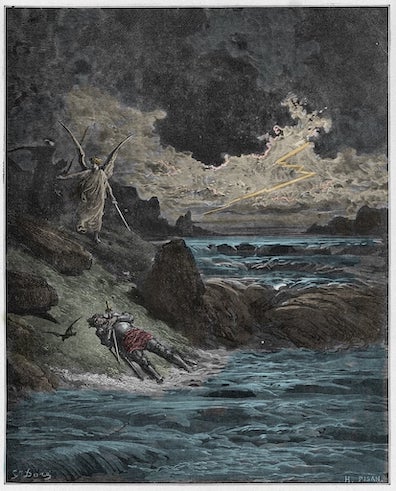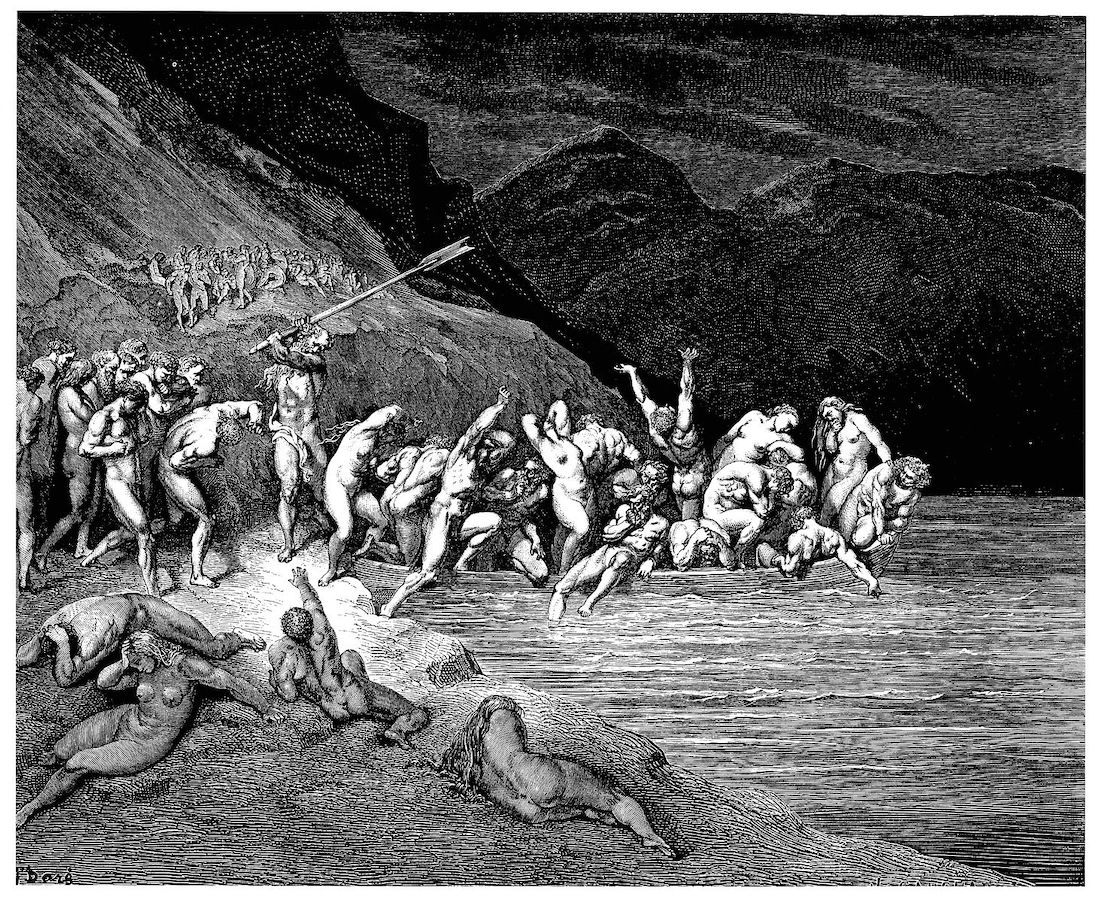 Virgil and Dante cross a "filthy bog" (7.127) covered with