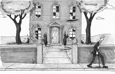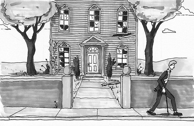 Shuttered, tenantless, unweeded garden. Whole place gone