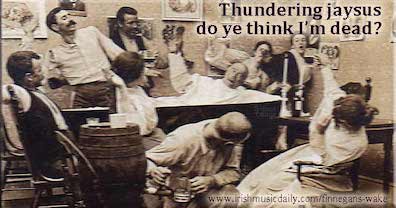 corpse to rise up: "Thunderin' Jaysus! Do you think I'm dead?"
