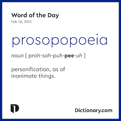 Prosopopoeia (PRO-so-po-PEE-uh, from Greek prosopon =