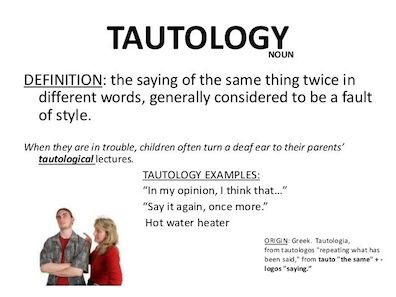 The old rhetorical sense of tautology (taw-TAHL-uh-gee, from