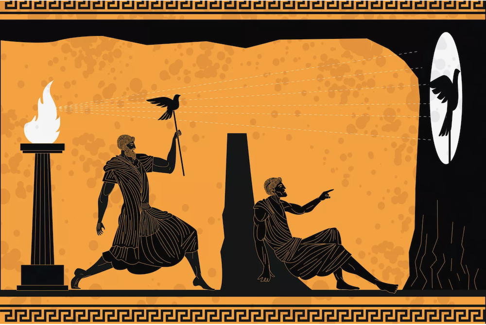 Allegory (AL-uh-gor-ee, from Greek allos = other + agoreuein
