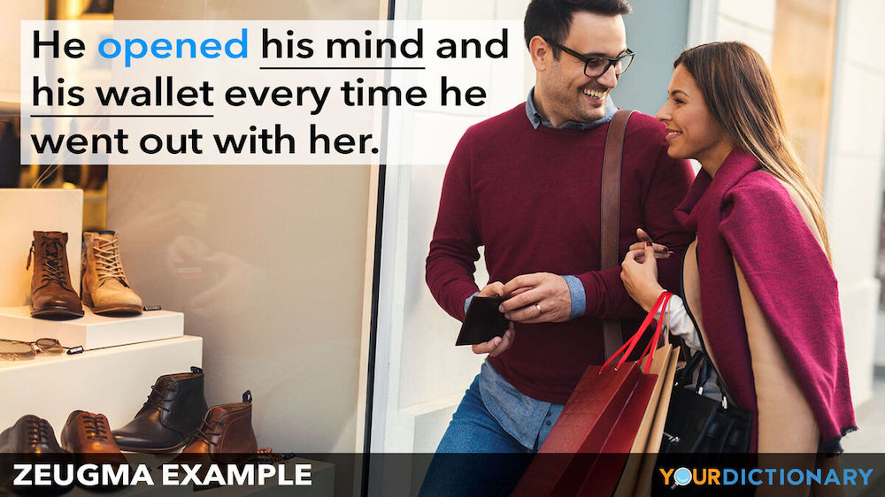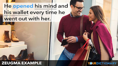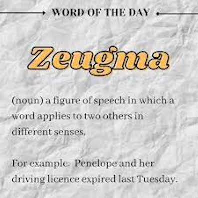 Zeugma (ZOOG-muh, from Greek zeugma = yoking,