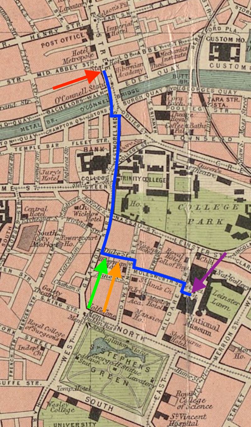 southward down O'Connell, Westmoreland, and Grafton Streets