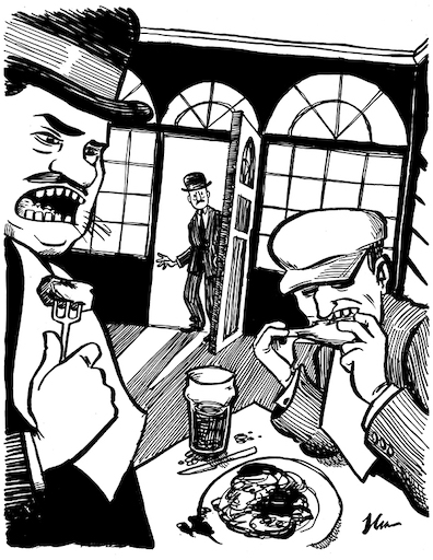 vegetarian lunch does not begin to absolve him of his species'