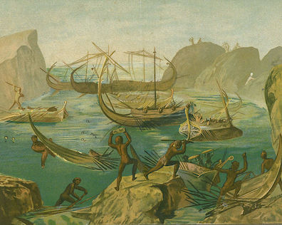 huge boulders, and speared the floating sailors for supper.