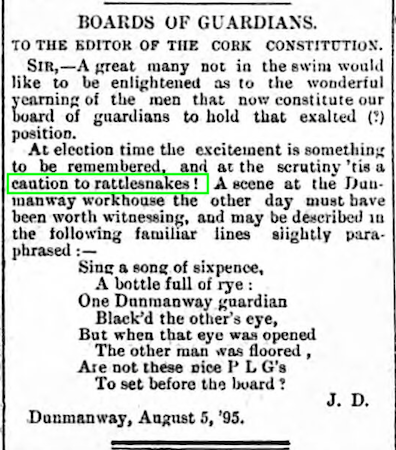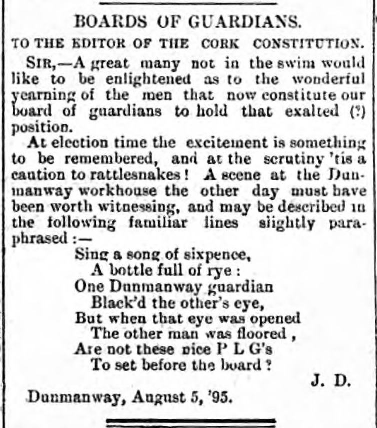 Detail from a letter to the editor in the 7 August 1895 issue of the Cork Constitution. Source: www.findmypast.com.