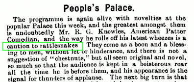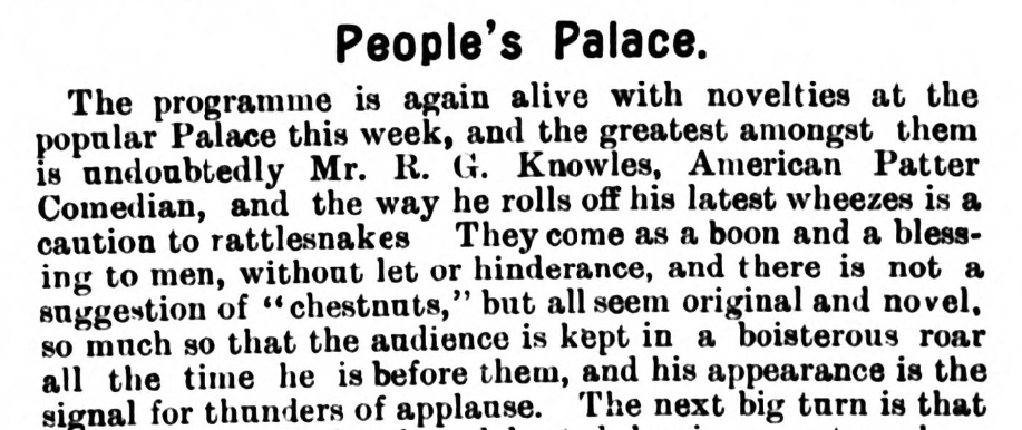 applies it to the "American Patter Comedian" R. G. Knowles: