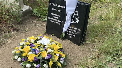Keogh died indigent and was buried without a tombstone, but in