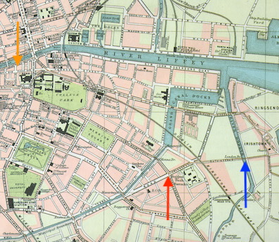 Liffey, but now she has evidently crossed the O'Connell Bridge