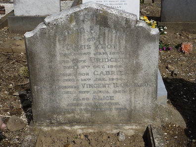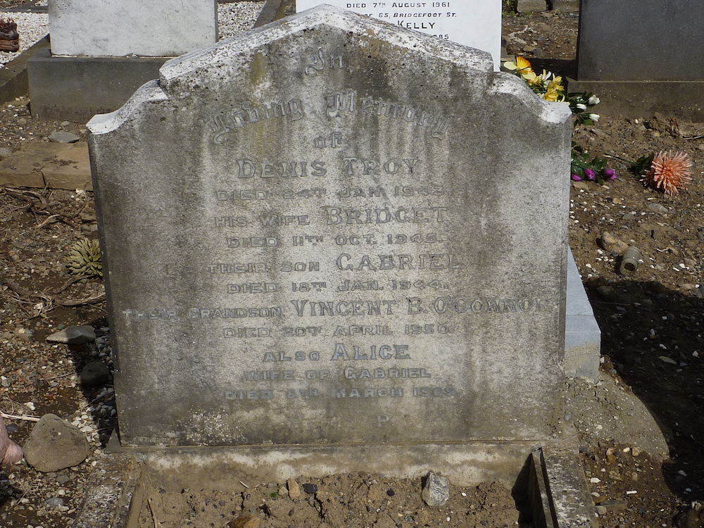 Gravestone in the Mount Jerome cemetery commemorating Denis Troy