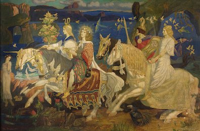 The Tuatha Dé Danann represented in Riders of the Sidhe, 1911
