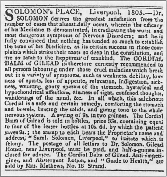 quasi-medical nostrum manufactured in Liverpool and sold for