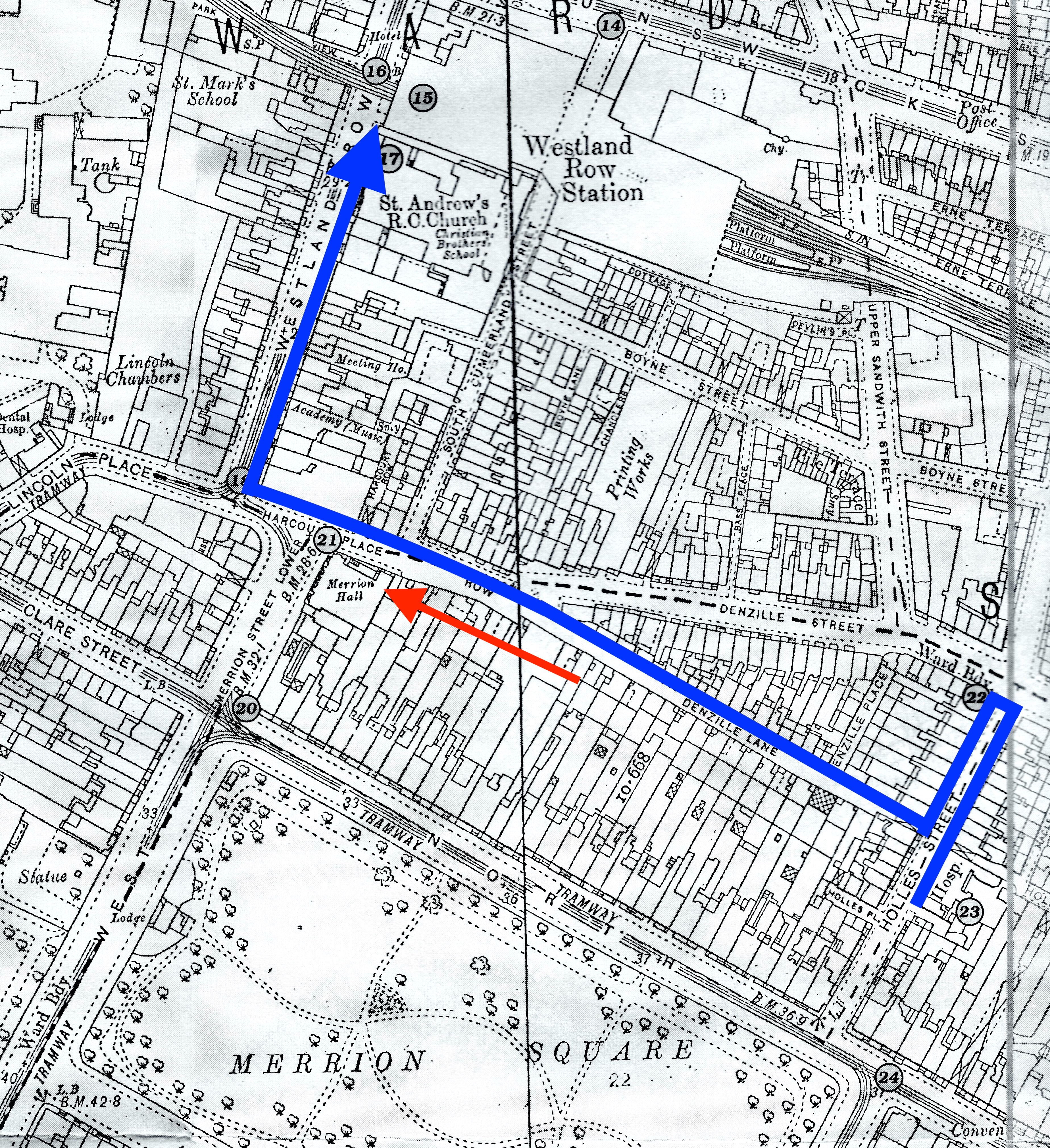 The church was at the bottom of Merrion Street Lower, one