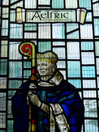 The aforesaid holy man was wonted that he would go at night to the sea, and stand on the salt brim up to his swire [neck] singing his beads. Then on a certain night waited another monk his faring; and with slack stalking his footswathes followed till that they both to sea came. Then did Cuthbert as his wont was; sang his beads in the sea-like ooze, standing up to the swire, and sithence his knees on the chesil bowed, with out stretched handbreadths to the heavenly firmament. Lo! then came twey seals from the sea-ground, and they with their flix his feet dried, and with their breath his limbs warmed, and sithence his beckonings with blessing bade, lying at his feet on the fallow chesil.Janusko observes that Cuthbert's nightly visits to the sea can he heard in Joyce's second and fifth paragraphs: Bloom arrives at the hospital "at night's oncoming," and he "over land and seafloor nine year had long outwandered." Joyce's second paragraph echoes the other monk waiting for Cuthbert's "faring": "Some man that wayfaring was stood by housedoor...that man that on earth wandering far had fared." Ælfric's word for neck, "swire," shows up in the fourth paragraph when nurse Callan rises and opens the door for Bloom "with swire ywimpled." The "twey seals" reappear in the third paragraph when nurses Callan and Quigley are called "Watchers twey." The fact that the seals dried Cuthbert and "his limbs warmed" may also, Janusko suggests, sound in the sixth paragraph in nurse Callan's report that Doctor O'Hare received "sick men's oil to his limbs" (59). These convincing parallels occur in all five paragraphs, and the careful reader will note how much Ælfric's use of alliteration (preserved in the modern translation) resembles Joyce's, popping up from time to time rather than establishing a rigid pattern.